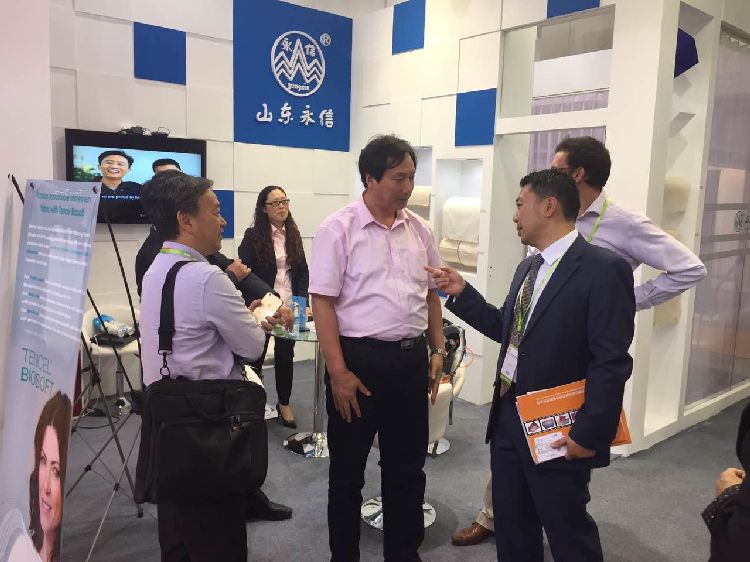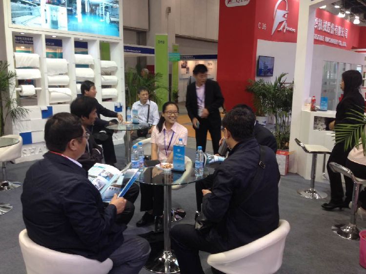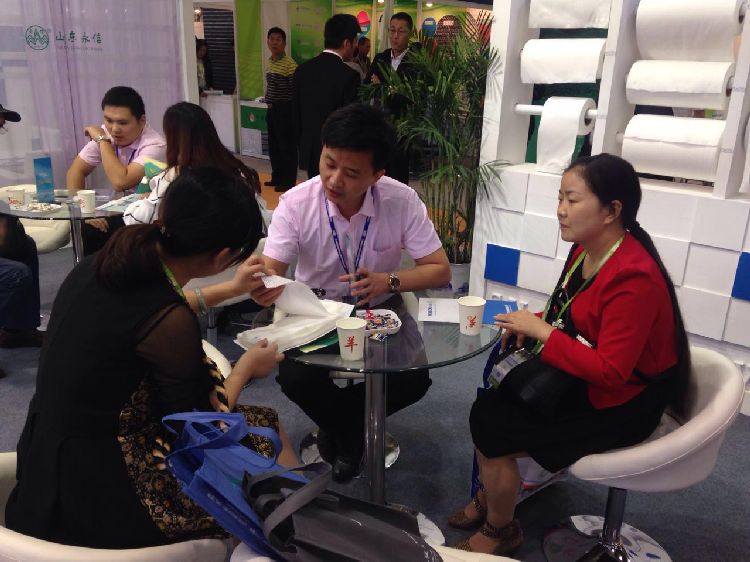 中國(guó)國(guó)際非織造材料展覽會(huì)暨高端論壇于2015年10月14日-16日在上海世貿(mào)商城展館舉行,山東省永信非制造材料有限公司在董事長(zhǎng)和總經(jīng)理帶領(lǐng)營(yíng)銷部、國(guó)際貿(mào)易部的同志們組成的參展團(tuán)隊(duì)參加了此次展會(huì)。我們以自搭展臺(tái)形式獨(dú)立參展,展區(qū)面積達(dá)54平米,設(shè)立了直鋪、交叉和水刺新產(chǎn)品展示區(qū),得到了客戶的認(rèn)可。通過展臺(tái)創(chuàng)意設(shè)計(jì),并在燈光、視頻音像等設(shè)施的配合下,產(chǎn)品得到了很好的展示;不僅宣傳了我司產(chǎn)品、服務(wù)理念和企業(yè)文化,吸引了眾多客商前來我司展臺(tái)參觀溝通洽談,而且通過業(yè)務(wù)人員熱情周到的接待、耐心細(xì)致講解,每天接待國(guó)內(nèi)外客戶百余人次,達(dá)成合作意向的就有十余家,有諸多新客戶首次接觸洽談,另外,公司新開發(fā)的水刺隱形面膜的新產(chǎn)品也得到許多國(guó)內(nèi)外客商的濃厚興趣,如甲殼素、竹纖維、醫(yī)用脫脂棉、草珊瑚纖維、薄荷纖維、茯苓纖維、天絲、大豆蛋白纖維和莫代爾等新型功能性纖維開發(fā)的水刺無紡布;也有很多客戶是帶著產(chǎn)品來談意向合作的。與客戶及行業(yè)專家交流期間,給了我們?cè)诋a(chǎn)品研發(fā)工作,提出了許多有益的思路和方向,對(duì)產(chǎn)品結(jié)構(gòu)的調(diào)整和市場(chǎng)的開發(fā)提供了很好的參考。