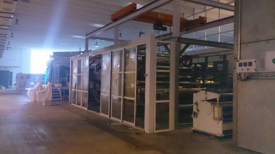 我們公司的第四條交叉線設(shè)備已經(jīng)安裝完畢,幅寬3.5米的進(jìn)口生產(chǎn)線,現(xiàn)已開始進(jìn)入調(diào)試階段,產(chǎn)品很快就會面向市場嘍!
