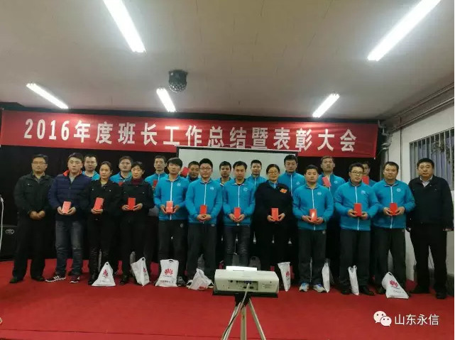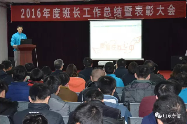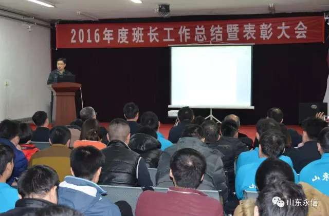 2016年12月26日,公司“2016年度班長工作總結(jié)暨表彰大會”在公司多功能廳隆重舉行。永信潤荷公司全體管理人員、班組長、不在崗的車間員工參加了此次會議。