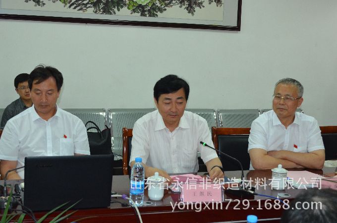 2016年7月6日中國(guó)產(chǎn)業(yè)用紡織品行業(yè)協(xié)會(huì)組織有關(guān)專家對(duì)山東永信申請(qǐng)的“中國(guó)醫(yī)衛(wèi)用水刺非織造材料研發(fā)基地(山東)”進(jìn)行評(píng)審。中產(chǎn)協(xié)李陵申會(huì)長(zhǎng)、李桂梅副會(huì)長(zhǎng)、鄭俊林副會(huì)長(zhǎng)、段守江副秘書長(zhǎng),山東省紡織工業(yè)協(xié)會(huì)夏志林會(huì)長(zhǎng),章丘市委常委、政法委王繼民書記,明水經(jīng)濟(jì)開發(fā)區(qū)經(jīng)發(fā)局潘立浩局長(zhǎng),山東省紡織科學(xué)院紀(jì)芳院長(zhǎng),東華大學(xué)紡織學(xué)院靳向煜副院長(zhǎng),上下游企業(yè)及公司有關(guān)領(lǐng)導(dǎo)參加了該研發(fā)基地現(xiàn)場(chǎng)審定會(huì)。