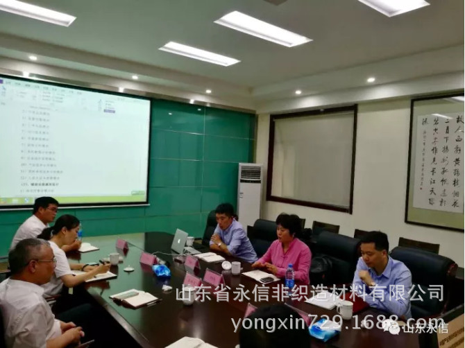 2017年9月29日,中國產(chǎn)業(yè)用紡織品行業(yè)協(xié)會副會長李桂梅、秘書長張傳雄、主任季建兵蒞臨永信公司開展調(diào)研,山東省永信非織造材料有限公司董事長、總經(jīng)理、副總經(jīng)理,濟南永信新材料科技有限公司總經(jīng)理、常務(wù)副總經(jīng)理陪同考察調(diào)研。