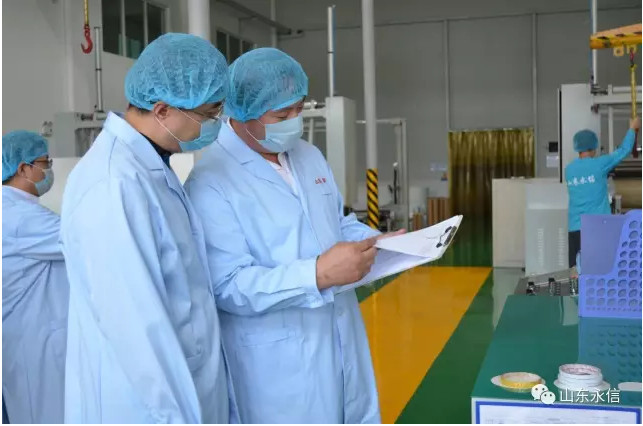 在公司新投產(chǎn)水刺生產(chǎn)線現(xiàn)場,總經(jīng)理向孟學(xué)峰、董寬同志等一行介紹了該條生產(chǎn)線的性能特點:自動化程度高,產(chǎn)量大,生產(chǎn)工藝先進,質(zhì)量技術(shù)指標穩(wěn)定,既能生產(chǎn)平紋,又能生產(chǎn)提花、網(wǎng)孔及多種紡織原料的系列水刺布;孟副書記、董副部長對該生產(chǎn)線順利投產(chǎn)達效,表示祝賀,希望我們再接再厲,永攀產(chǎn)量和質(zhì)量新高,同時叮囑我們要重視安全生產(chǎn)和環(huán)境保護等。在產(chǎn)品展示中心,公司總經(jīng)理夏倫全介紹了公司自主研發(fā)生產(chǎn)的系列生物質(zhì)新材料非織造產(chǎn)品(甲殼質(zhì)、山茶花、木糖醇、草珊瑚、薄荷、白竹炭等生物質(zhì)纖維水刺布及后制品)及其市場前景、應(yīng)用領(lǐng)域、產(chǎn)品特性;孟副書記、董副部長希望公司搶抓市場機遇,加速推進永信生物質(zhì)新材料生產(chǎn)基地建設(shè),區(qū)委區(qū)政府一定會做好相關(guān)產(chǎn)業(yè)政策扶持和落地。