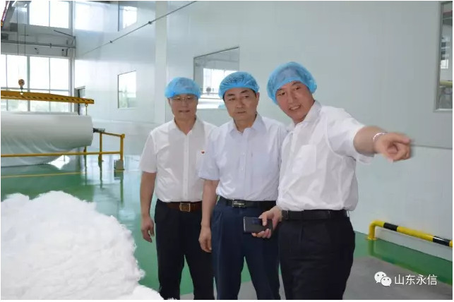 在公司貴賓接待室,董事長(zhǎng)史成玉與王繼民同志進(jìn)行了深刻的洽談,在公司新投產(chǎn)水刺生產(chǎn)線現(xiàn)場(chǎng),董事長(zhǎng)史成玉向王繼民同志介紹了該條生產(chǎn)線的性能特點(diǎn):自動(dòng)化程度高,產(chǎn)量大,生產(chǎn)工藝先進(jìn),質(zhì)量技術(shù)指標(biāo)穩(wěn)定,既能生產(chǎn)平紋,又能生產(chǎn)提花、網(wǎng)孔及多種紡織原料的系列水刺布;王繼民主任對(duì)該生產(chǎn)線順利投產(chǎn)達(dá)效,表示祝賀,希望我們?cè)俳釉賲?,永攀產(chǎn)量和質(zhì)量新高,同時(shí)叮囑我們要重視安全生產(chǎn)和環(huán)境保護(hù)等。在產(chǎn)品展示中心,公司總經(jīng)理夏倫全介紹了公司自主研發(fā)生產(chǎn)的系列生物質(zhì)新材料非織造產(chǎn)品(甲殼質(zhì)、山茶花、木糖醇、草珊瑚、薄荷、白竹炭等生物質(zhì)纖維水刺布及后制品)及其市場(chǎng)前景、應(yīng)用領(lǐng)域、產(chǎn)品特性;王繼民主任希望公司搶抓市場(chǎng)機(jī)遇,加速推進(jìn)永信生物質(zhì)新材料生產(chǎn)基地建設(shè),區(qū)委區(qū)政府一定會(huì)做好相關(guān)產(chǎn)業(yè)政策扶持和落地。