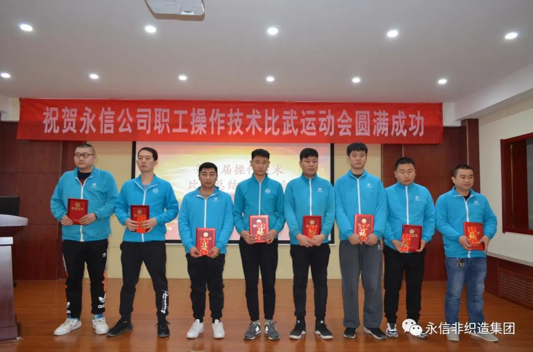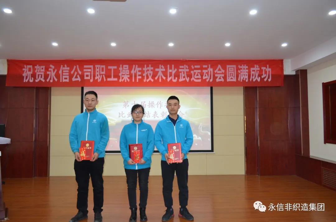 2021年11月26日上午,永信集團(tuán)第十屆職工操作技術(shù)比武活動(dòng)總結(jié)表彰大會(huì)在公司多功能廳召開(kāi),無(wú)紡板塊全體管理人員、獲獎(jiǎng)人員及不在崗的班長(zhǎng)參加了此次會(huì)議。會(huì)上,副總經(jīng)理李軍華對(duì)第十屆職工操作技術(shù)比武活動(dòng)情況進(jìn)行了總結(jié)匯報(bào);副總經(jīng)理劉雙營(yíng)宣讀了操作技術(shù)比武獲獎(jiǎng)人員表彰決定;董事長(zhǎng)史成玉對(duì)此次操作技術(shù)比武活動(dòng)作了重要講話(huà),對(duì)這屆操作技術(shù)比武活動(dòng)給予了高度評(píng)價(jià),希望公司員工注重操作技術(shù),重視技術(shù)研究,多學(xué)習(xí)肯鉆研,使自己的終生就業(yè)能力得到較快提升,提升自己的綜合能力。